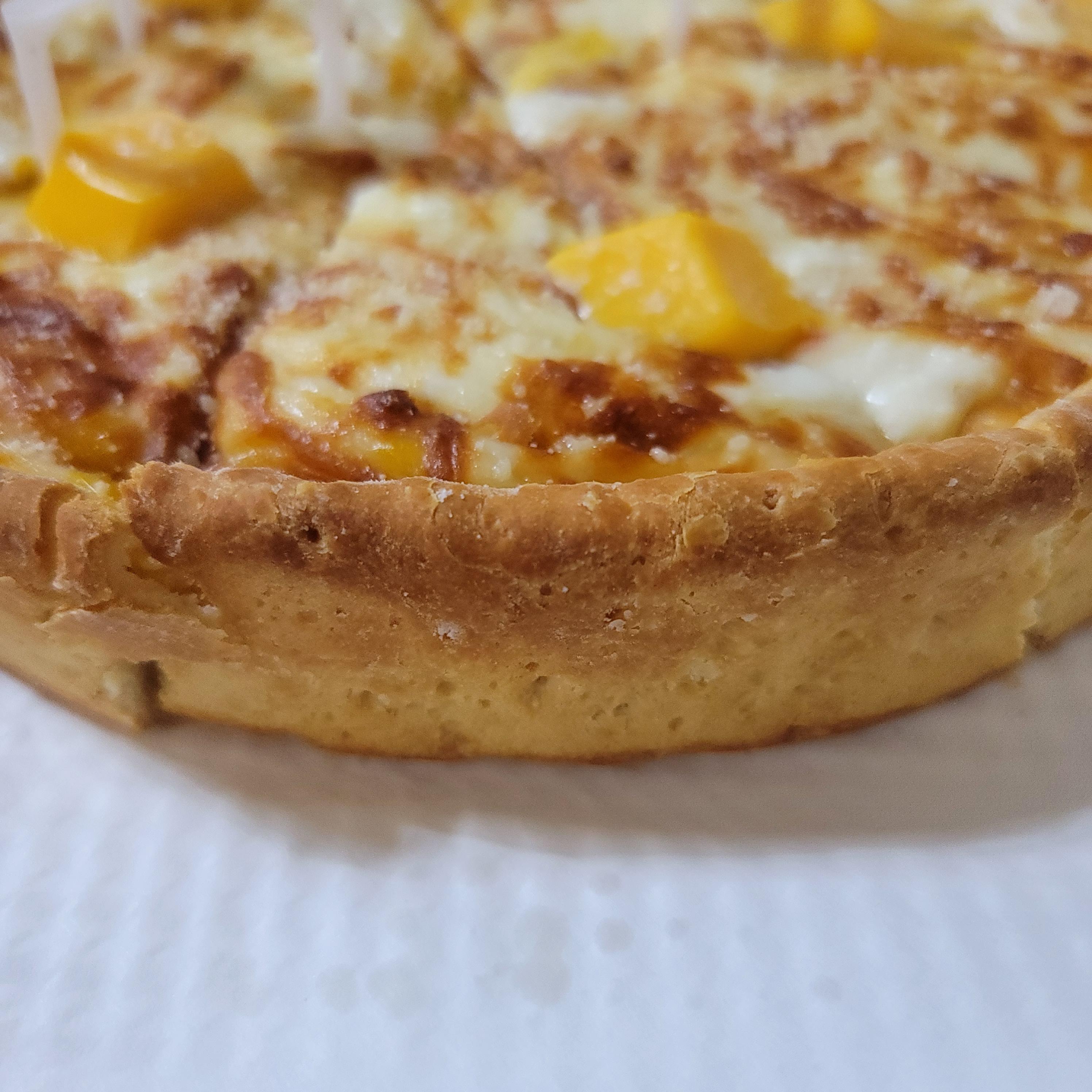 두툼하진 않지만 겉을 감싸는 피자 도우 끝 부분이 바삭하고 버터 맛이 나는 쿠키처럼 맛있습니다. 전반적으로 달달한 편이고 치즈 종류가 5가지라 느끼할 것 같지만 아라비아따소스가 약간 들어가 있어 매콤함이 느끼함을 약간 잡아줍니다. 시카고피자에 대한 환상(치즈폭탄의 매우 두툼한 모습)이 크게 없는 분이라면 호불호가 없을 메뉴로 다 같이 먹기 좋습니다. 한 번쯤은 굽네 시카고피자를 시도하셔도 좋을 것 같습니다.